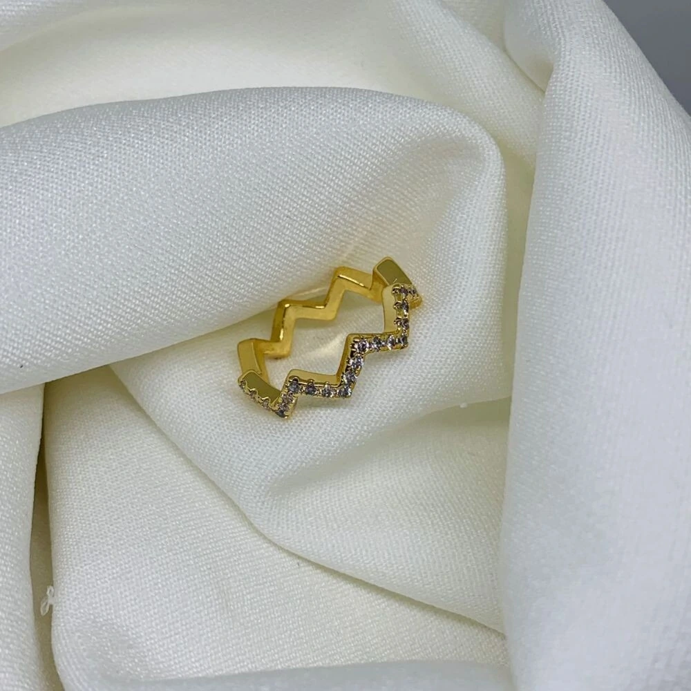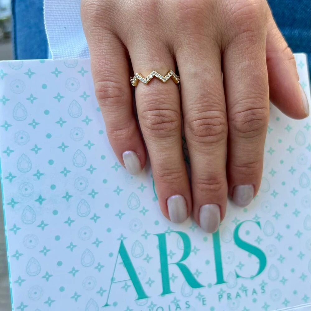 Anel zigzag cravejado com brilho e design ousado. Um acessório moderno e elegante para destacar seu estilo com personalidade.